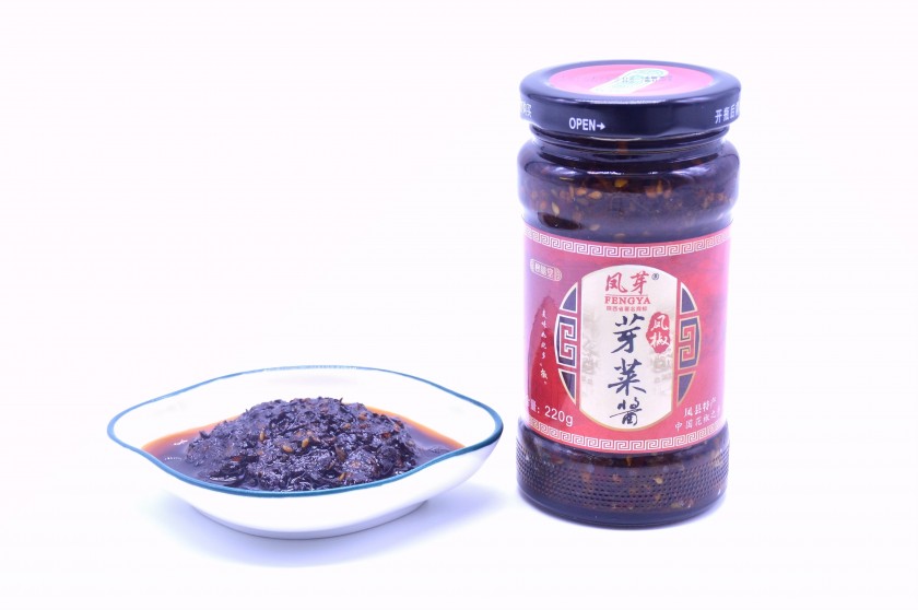 产品概述:凤椒芽菜酱选用优质凤县大红袍花椒芽菜为主要原料,配以辣椒干、鲜葱、鲜蒜等辅料,经传统炒制工艺,小火煎炒,秘制成酱,不发酵,无添加,口味鲜香麻辣,既保留了花椒芽原有的鲜香,又可开胃,是为佐餐调味之佳品。