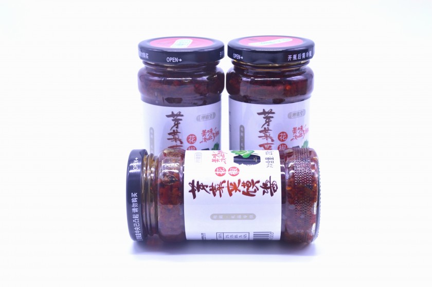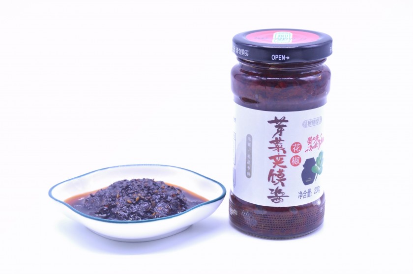产品概述:穆膳堂花椒芽菜夹馍酱选用陕西秦岭山区优质凤椒大红袍花椒芽菜和优质永川豆豉为主要原料,添加新鲜辣椒、葱、蒜、芝麻等辅料,配以*香辛粉,经传统炒制工艺精制而成。具有花椒芽菜的特有麻香味,又兼具永川豆豉豉香的特点,是居家调味,夹馍拌饭的搭配.